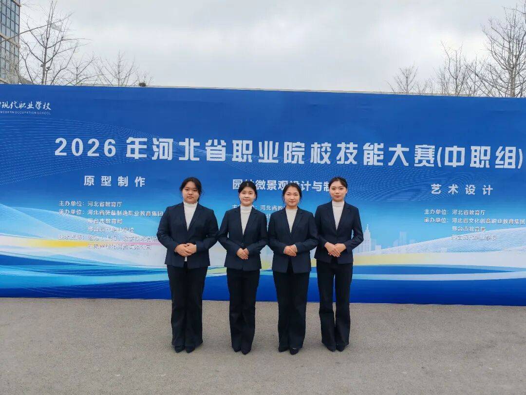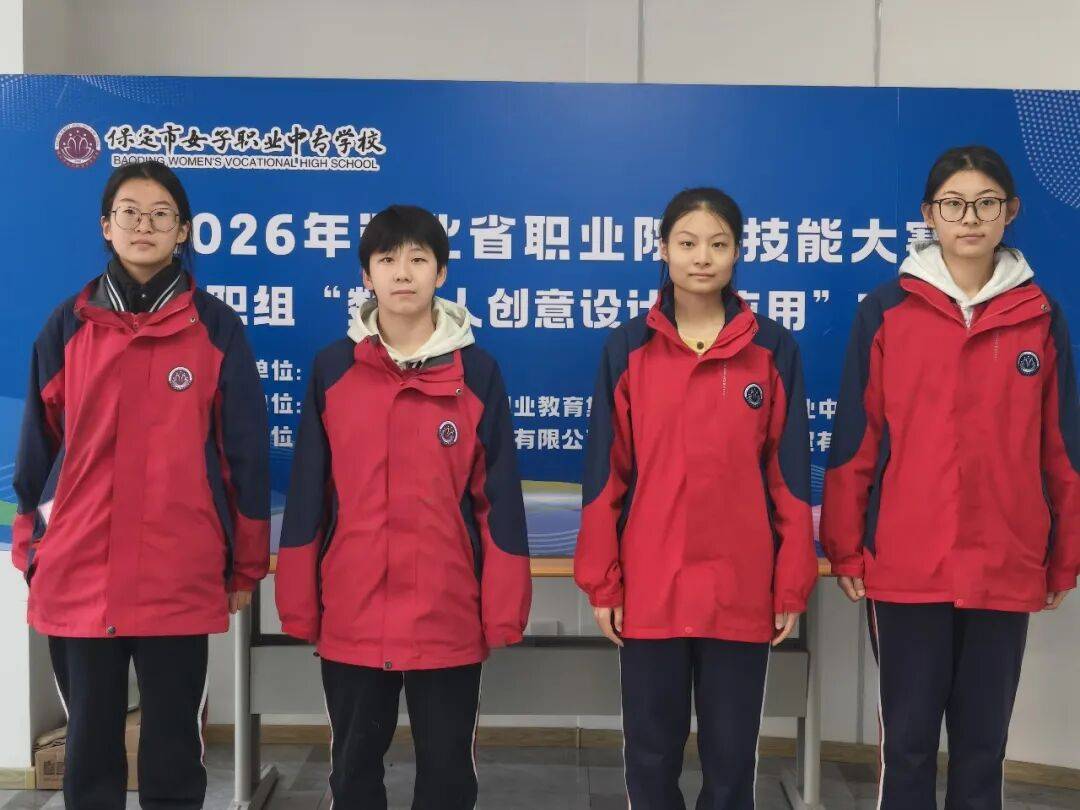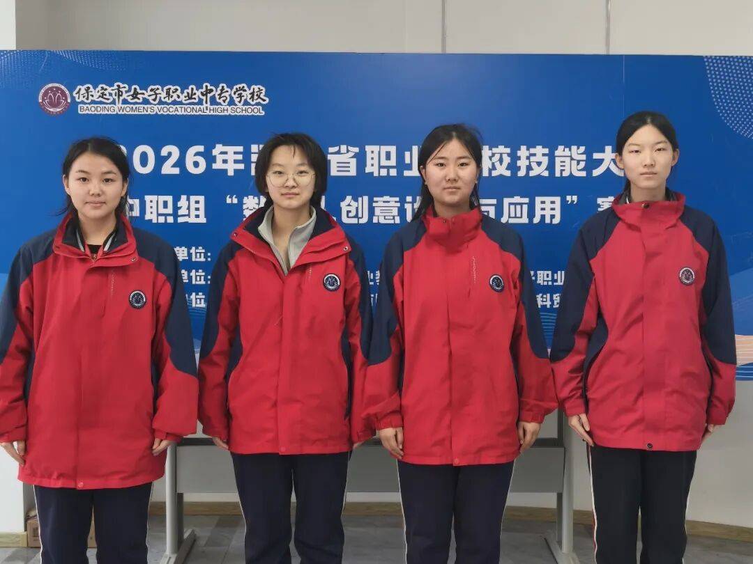 2026年1月15日—18日,2026年河北省职业院校技能大赛中职组“艺术设计”赛项在邢台现代职业学校成功举办。该赛项由河北省教育厅主办,邢台现代职业学校承办,吸引了来自全省70支中职代表队参赛。经过激烈角逐,保定市女职中专由任婕、佟颖老师指导的林怡霏、李伟然、李泽轩、王家钰四名同学凭借扎实过硬的专业技能、从容自信的台风仪态,荣获本次大赛一等奖的好成绩。