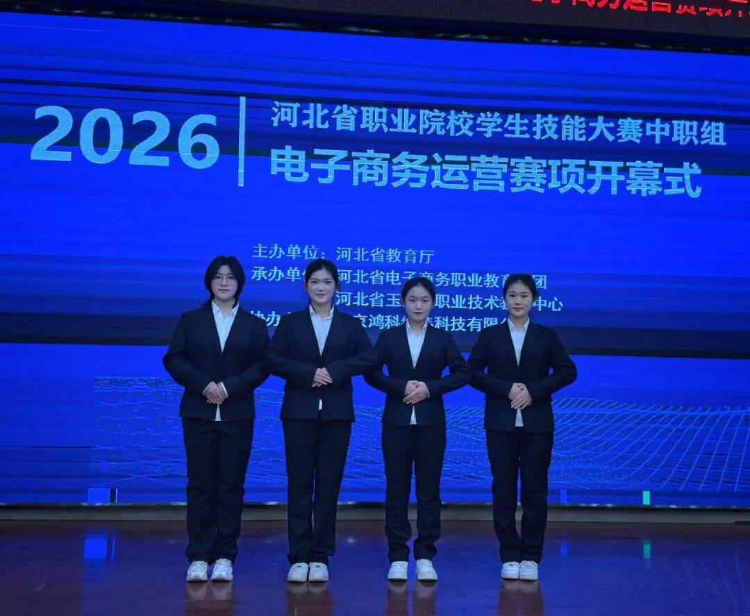 2026年1月17日,2026年河北省职业院校技能大赛中职组电子商务运营赛项在唐山玉田县职业技术教育中心成功举办。该赛项由河北省教育厅主办,玉田县职业技术教育中心承办,吸引了来自全省的65支代表队参赛。经过激烈角逐,保定市女职中专由崔艳薇、要莹老师指导的刘紫畅、王叶婷、刘禹茜、杨艾萱四名同学凭借扎实的理论知识和专业技能,经过两天的拼搏,荣获该赛项团体二等奖的好成绩。
