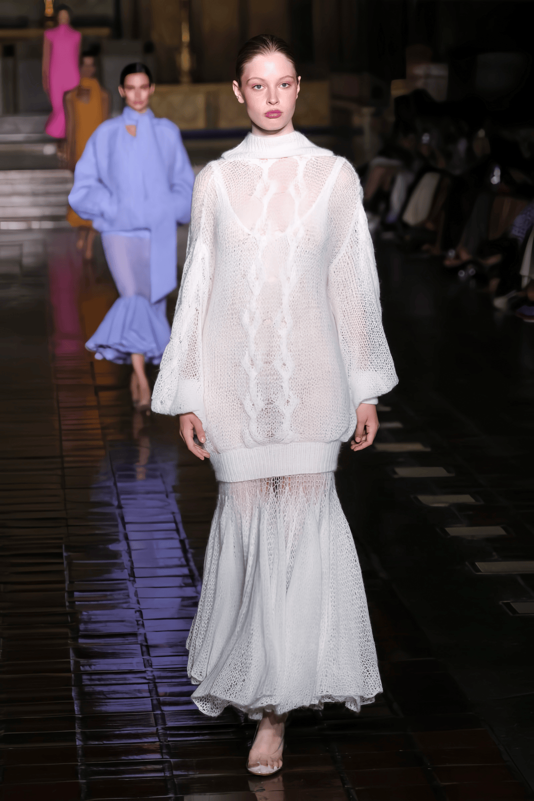 为 Prabal Gurung 走秀,她以一袭白色针织单品亮相。只能说基因强大,那嘴唇简直是马斯克翻版。▼